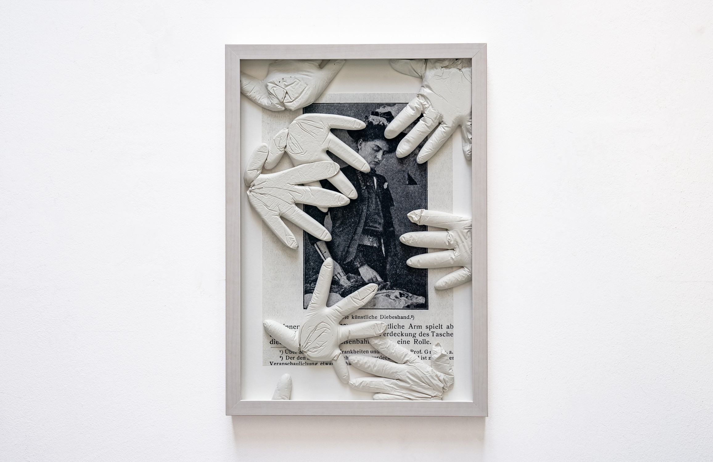 Changing Hands 350x500mm, framed Ink jet print on paper, plaster 2023 23.8.–6.9.2024; Einsichten; Kupper Modern, Zurich (CH) 3.3.–22.4.2023; At Your Earliest Convenience, CALM; Lausanne (CH) See also