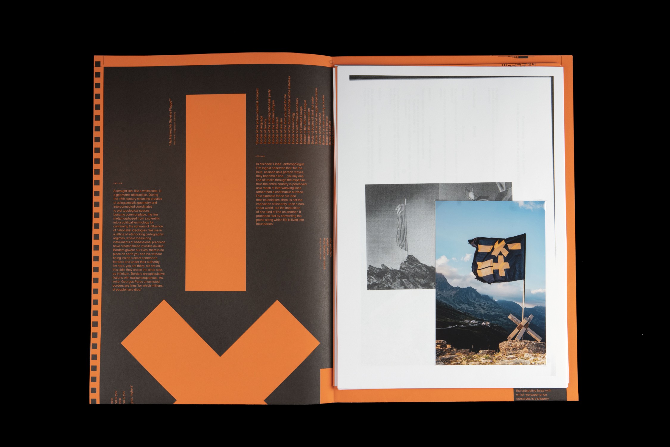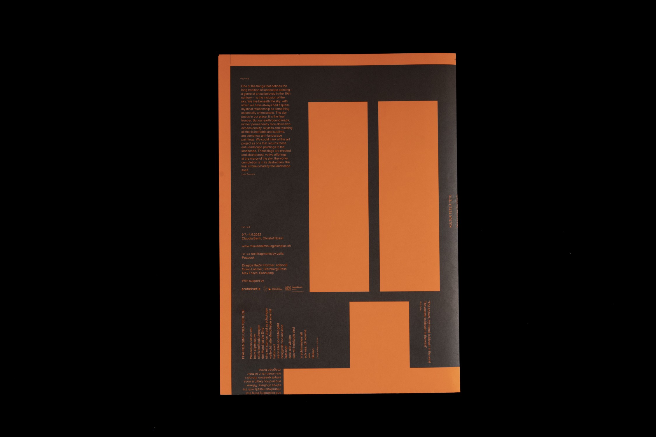 For the project –×–=+ artists Claudia Barth and Christof Nüssli have planted seven flags at seven points on a self-appointed north-south line through the centre of Switzerland. The symbols on the flag (–×–=+ ) are a playful deconstruction of the monolithic simplicity of the Swiss flag. This publication was produced during the same period, documenting the seven locations with images and research material. It also contains contributions on border, nation and resistance by Dragica Rajčić Holzner, Andrea Bagnato & Marco Ferrari, Leila Peacock, Initiative Nammou, Niştiman Erdede, Claudia Barth & Christof Nüssli. All books are handmade, signed and numbered.